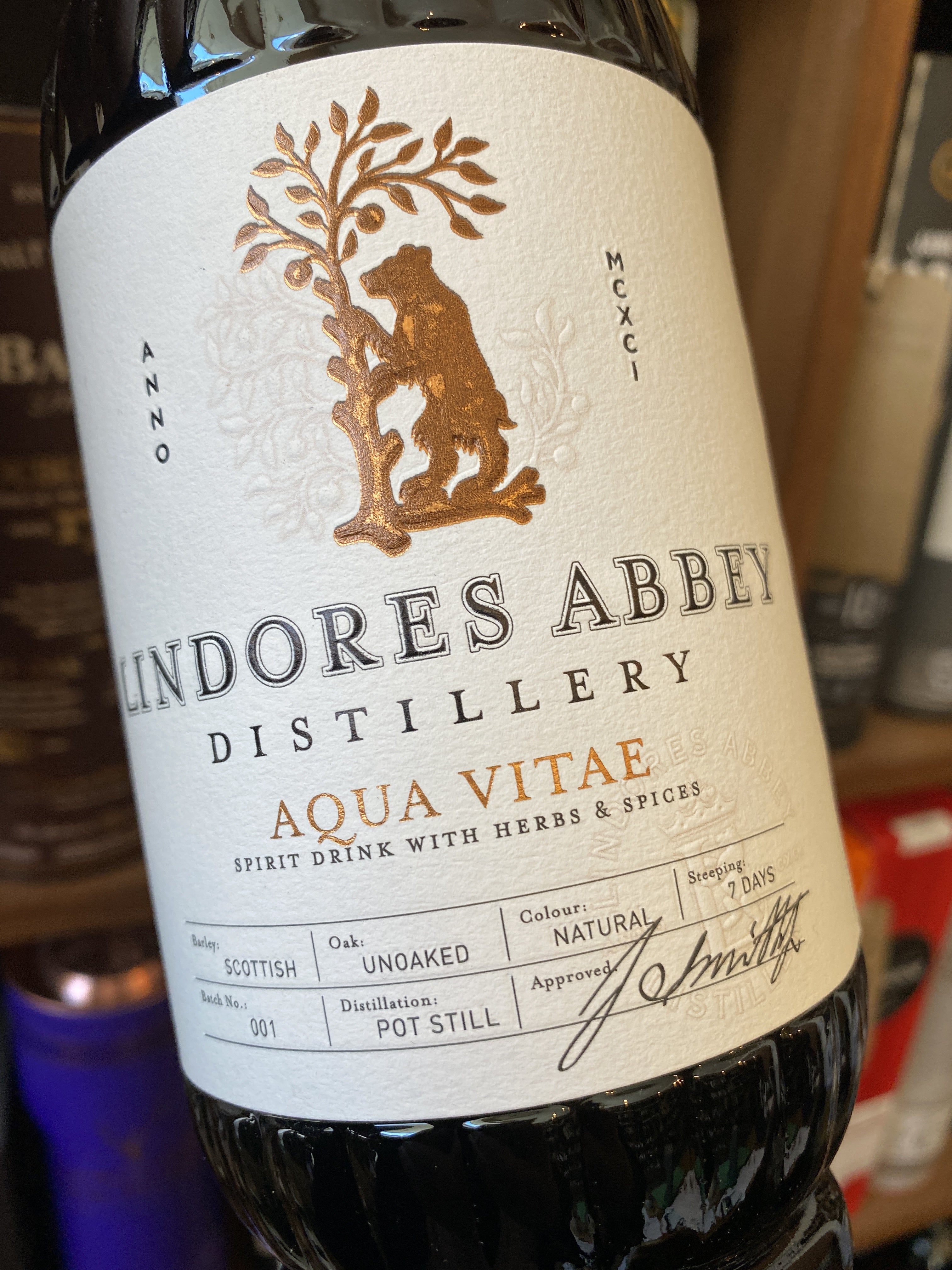 A delicious herbal Aqua Vitae from the historic home of whisky distillation in Scotland, Lindores Abbey.