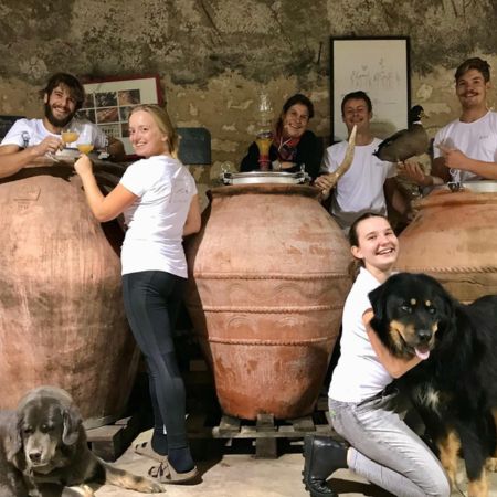 The Aubrion family have run this small Right Bank estate since 1998, when Virginie Aubrion and her family took over the delapidated farmhouse and surrounding land. Indomitable and determined matriarch Virginie, has always been the winemaker here and now shares the work of running the estate with her son Corentin, with other family members chipping in as and when they can. Their aim has always been to return their home to its original state as a farm and their commitment to biodiversity is very much enhanced by their menagerie of sheep, pigs, chickens, horses, donkeys and ducks - their favourite Michele appearing on the labels of their cuvée des Potes range. The wines are hand-made and artisanal and sit on the "natural" side of the fence, but still very proper and crafted rather than "funky".